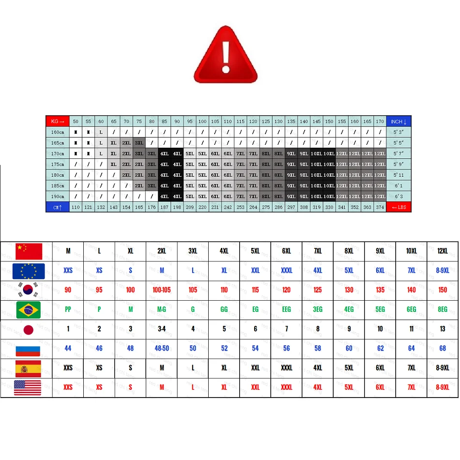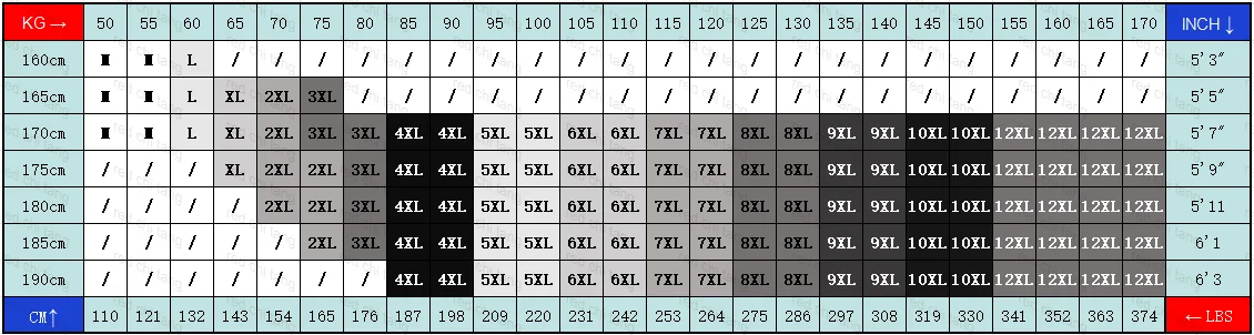 2:Our sizes are based on Chinese sizes. Chinese sizes run much smaller than EU and US sizes, normally there will be 3-4 different sizes. For example, if your European size is XL, your Chinese size would most likely be 4XL.
