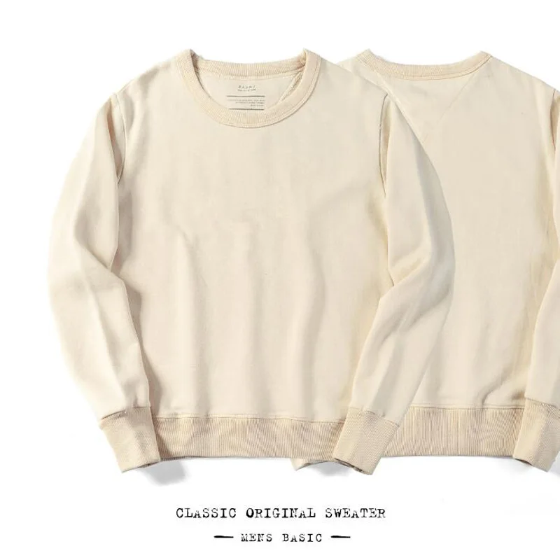 Vintage Hoodie Men Embryo Color O-Neck Harajuku Sweatshirt Sudadera Hombre Long Sleeves Cotton Mens Pullover Hoodies Streetwear